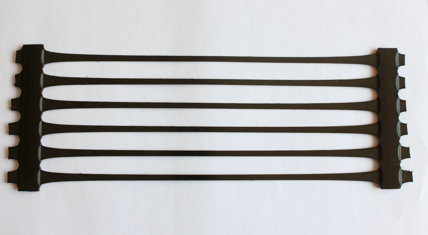 聚丙烯单向土工格栅经过塑化挤出、板材冲孔、纵向拉伸生产而成的一种高强度加筋土工合成材料。具有非常高的抗拉强度和弹性模量。