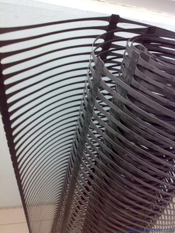 聚丙烯单向土工格栅经过塑化挤出、板材冲孔、纵向拉伸生产而成的一种高强度加筋土工合成材料。具有非常高的抗拉强度和弹性模量。
