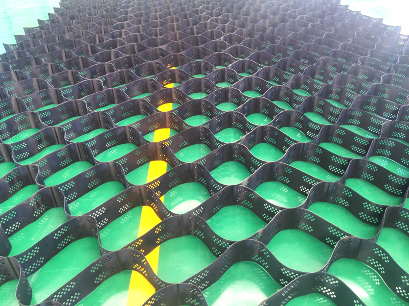 泰安协力土工格室是目前国内外较为流行的一种新型的高强度土工合成材料,是按照GB/T 19274-2003执行标准,将强化的HDPE片材经高强力超声波焊接而形成的一种三维网状格室结构。可伸缩自如,运输可折叠,施工时张拉成网状,展开 成蜂窝状的立体网格,填入泥土、碎石、混凝土等松散物料,构成具有强大侧向限制和大刚度的结构体。